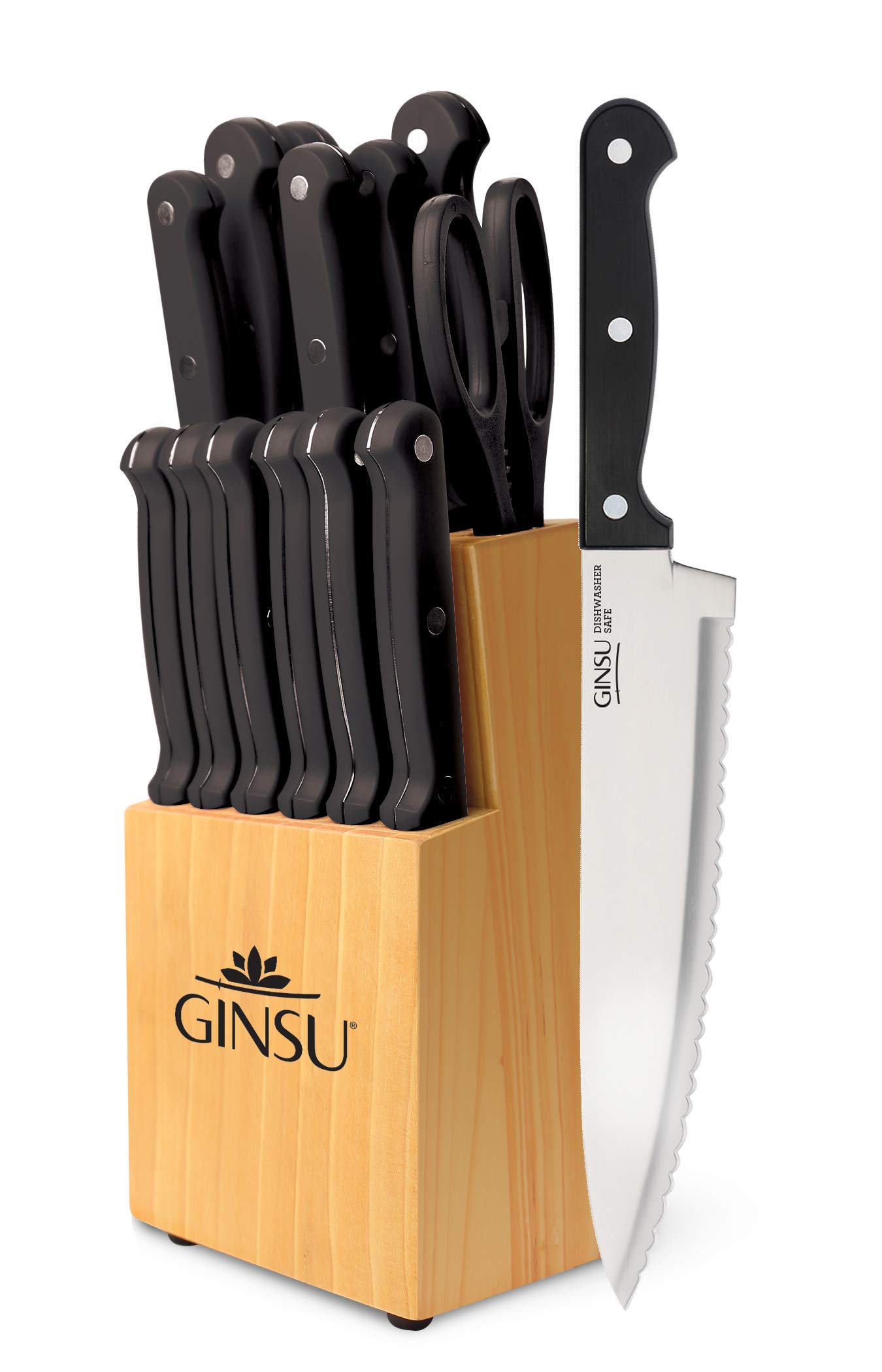 Home Home & Kitchen Ginsu Kiso 14-Piece Black Knife Set with Natural Block – Dishwasher Safe and Always Sharp